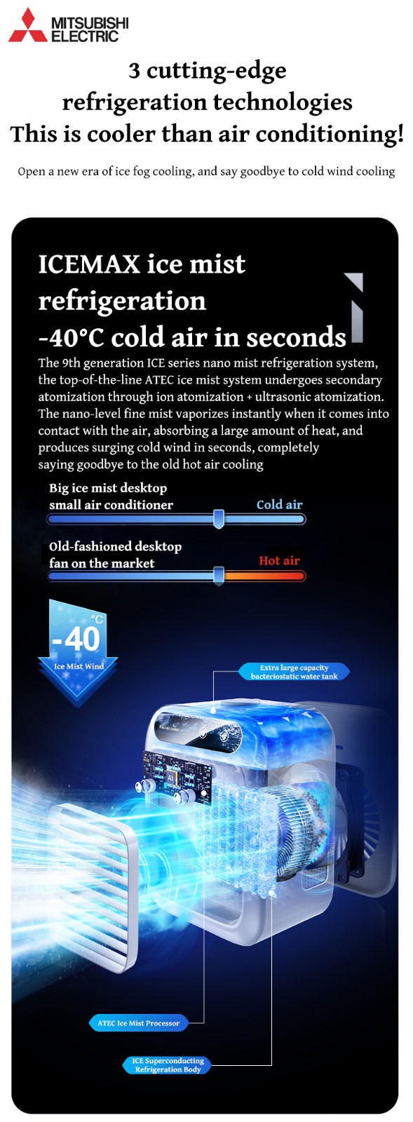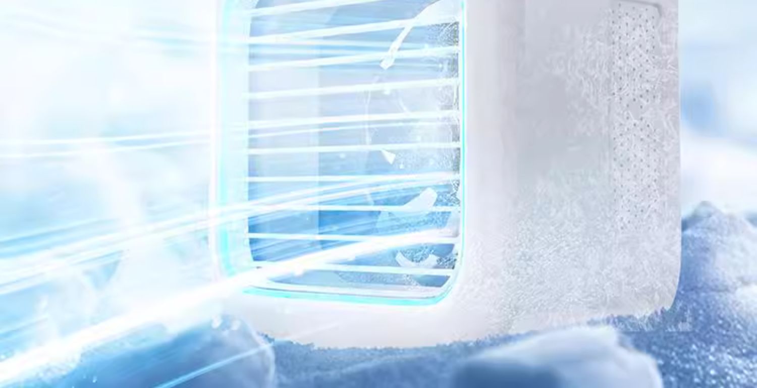 Odată cu venirea verii, am lansat cel mai recent ventilator de aer condiționat cu ceață de gheață, care vă permite să vă bucurați de răcoarea aerului condiționat fără a adăuga apă!